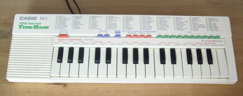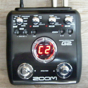 Che Guitare today mainly uses a Zoom G2 multi-effect device and a volume pedal, occasionally some more floor effect devices. The G2 has, in contrast to newer versions, a well-readable double-digit seven-segment digital display that can be read easily from a distance. He also uses various homebrew retro effects. Sanaphantastron only uses virtual synthesizers and sequencers. Only one exception is currently an old Casio SA-1 Tonebank. Hand played keyboard parts are otherwise connected via midi-controller keyboards to synthesizer software on computers. The most used software is Dreamstation 1, TS404, Synth1, Schism and Audacity. |